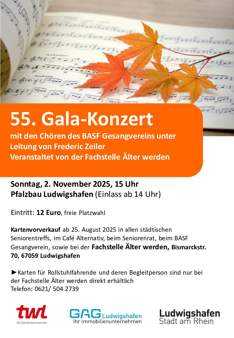 Die Stadt Ludwigshafen veranstaltet am 2. November das Gala-Konzert mit den drei BASF-Chören: